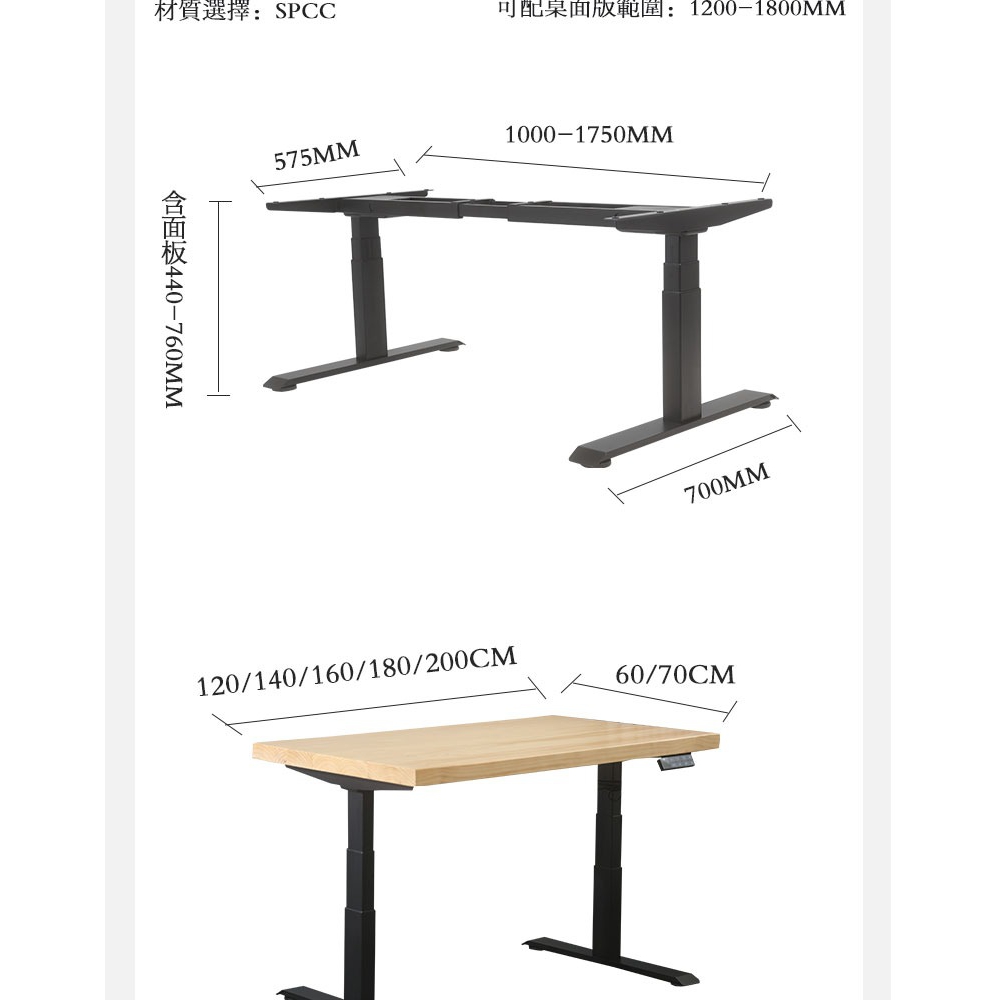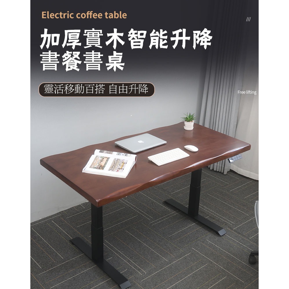 雙機芯三節腿 穩固耐重 厚實5CM實木桌板 4檔記憶