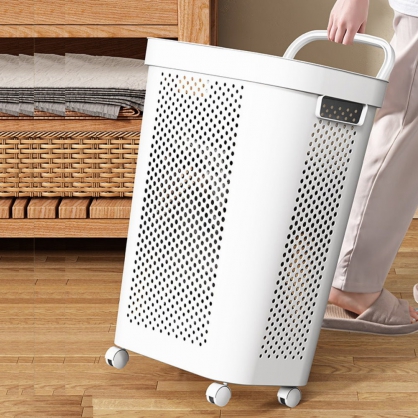 MGSHOP 簡約大容量掀蓋附輪洗衣籃 髒衣籃(大籃+小籃各一入)