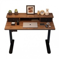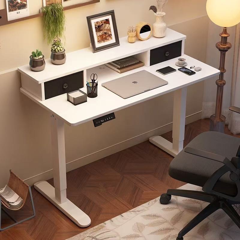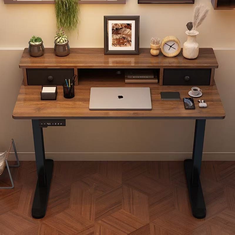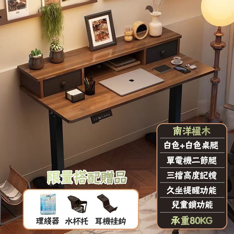 MGSHOP 160cm智能升降電腦桌 電動升降桌 電動書桌 電動辦公桌(桌面層架收納款/南洋楹木