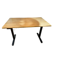 MGSHOP 140/70/3CM 隱藏雙機芯電動升降桌電腦桌辦公加厚松木實木厚3CM款)D-12