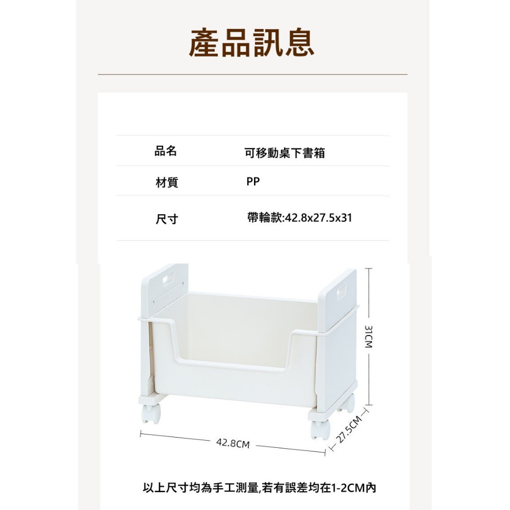 MGSHOP 可移動桌下書箱 書包收納箱(雙側提手款 / 三層)