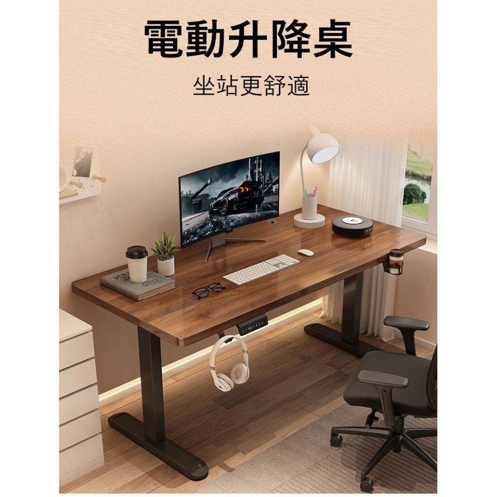 MGSHOP雙機芯電動升降桌 160/70CM 電腦桌 辦公桌 書桌 兒童升降桌(E1實木顆粒板)