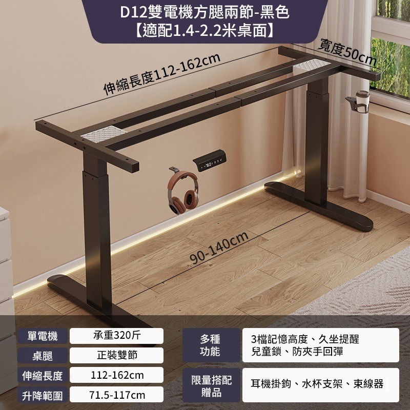 MGSHOP 隱藏雙機芯電動升降桌160/70/25mm/D12電腦桌辦公桌書桌兒童升降桌(楠木實木)