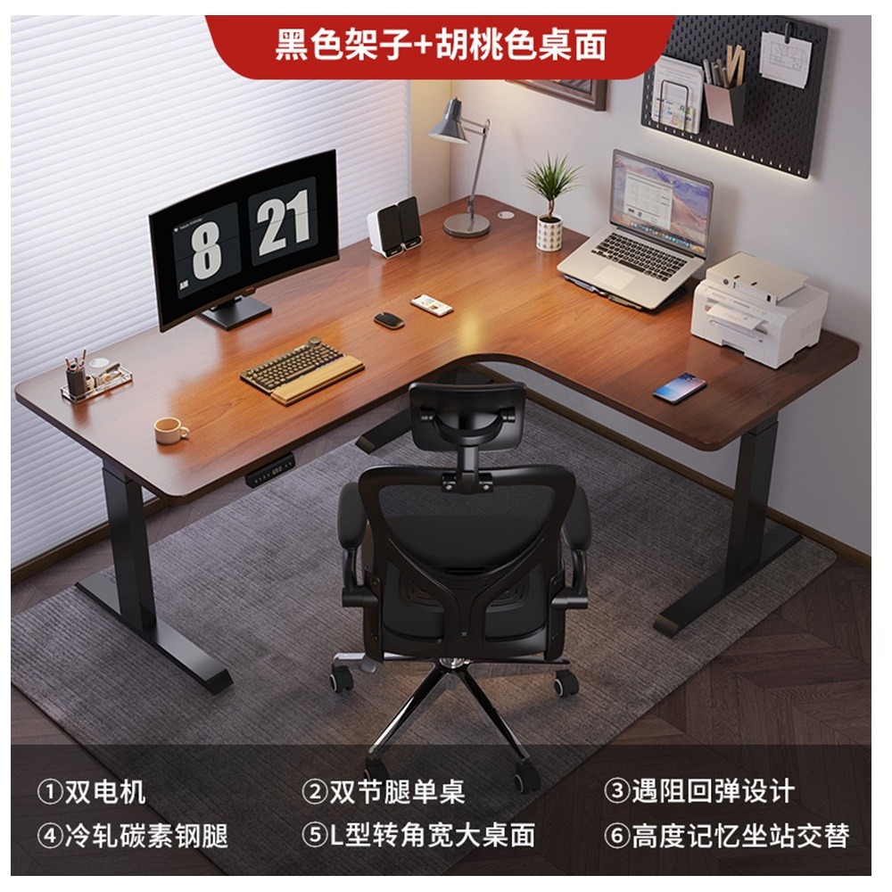MGSHOP L型轉角 雙機芯 電動升降桌 電腦桌 辦公桌 書桌(160cm SD18-2) 預約2026/1/18 專車送貨安裝