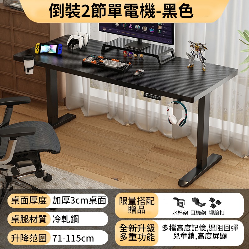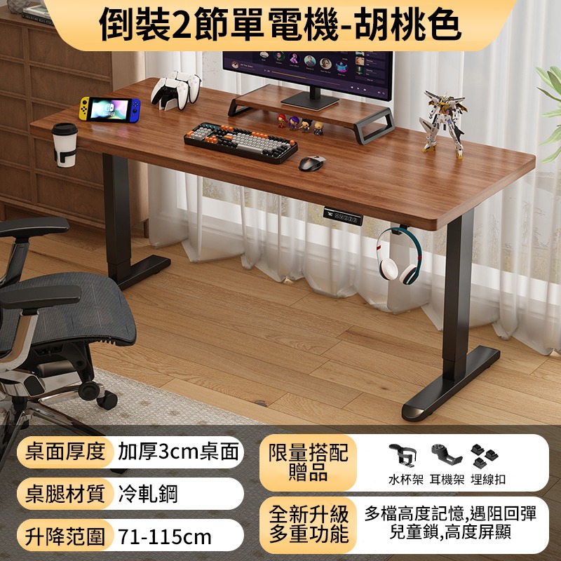 MGSHOP單機芯電動升降桌 120/70/25mm電腦桌 辦公桌 書桌 兒童升降桌(楠木胡桃板)